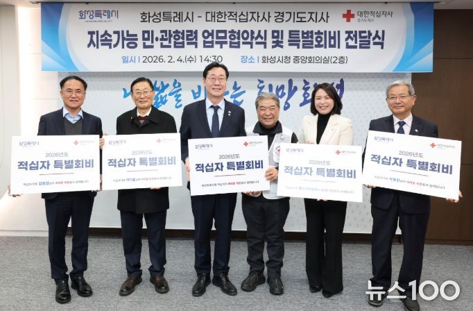 뉴스100 김동초 기자 | 화성특례시와 대한적십자사 경기도지사가 4일 화성시청에서 지속가능한 민·관협력 거버넌스 구축을 위해 업무협약을 체결했다.