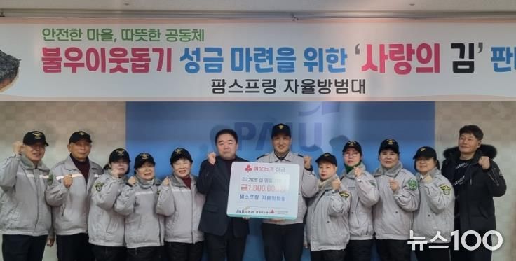 팜스프링 자율방범대는 지난 1월 30일 금촌3동 행정복지센터를 방문해 현금 100만 원을 전달했다. 이번 기탁금은 자율방범대원들이 직접 발로 뛰며 진행한 ‘사랑의 김 판매’수익금으로 마련되어 그 의미를 더했다.