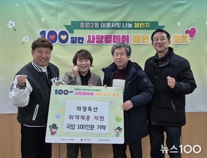 뉴스100 김동초 기자 | 의정부시 호원2동주민센터는 2월 3일 의정축산이 설 명절을 맞아 어려운 이웃들을 위해 한우국밥 100인분을 기탁했다고 밝혔다.