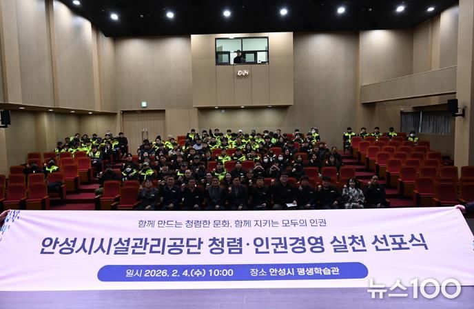 뉴스100 김동초 기자 | 안성시시설관리공단은 2026년을 맞아 지난 2월 4일 안성시평생학습관에서 청렴·인권경영 실천 선포식을 개최했다고 밝혔다.