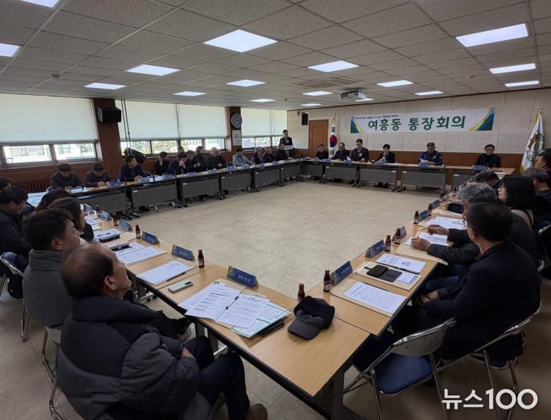 뉴스100 김동초 기자 | 여주시 여흥동은 6일 오전, 행정복지센터 2층 회의실에서 제10대 김광덕 부시장과 함께하는 2월 1차 통장회의를 개최했다. 회의에는 김광덕 부시장, 김영완 여흥동장, 정지남 홍문지구대장, 이병길 여주농협조합장 및 33개 마을 통장이 참석했다.