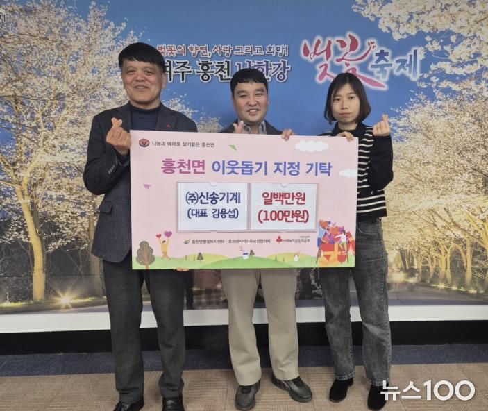 뉴스100 김동초 기자 | (주)신송기계는 설 명절을 앞두고 지역 내 어려운 이웃들이 따뜻한 명절을 보낼 수 있도록 이웃돕기 성금 100만 원을 흥천면행정복지센터에 기탁했다.