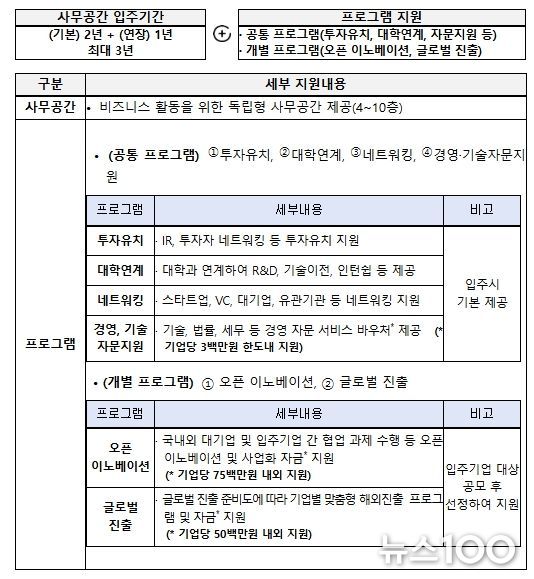 뉴스100 김동초 기자 | 중소벤처기업부와 창업진흥원은 9일 글로벌 스타트업의 성장을 종합적으로 지원하는 신규 창업 인프라인 ‘K-StartHub’의 신규 개관을 앞두고 첫 입주기업을 모집한다고 밝혔다.