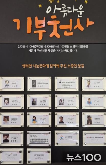 뉴스100 김동초 기자 | 부천시는 기증자에 대한 감사의 뜻을 전하고 기부 문화를 확산하기 위해 상동도서관 1층 로비에 설치된 ‘아름다운 기부천사’ 게시판에 신규 기증기관 2곳인 ㈜웅진과 부천서점(업)협의회를 등재했다고 10일 밝혔다.