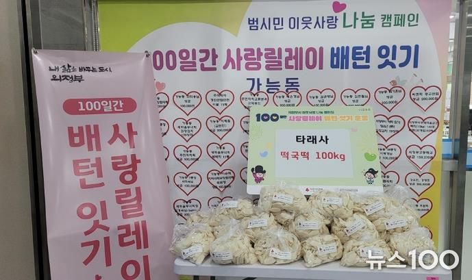 뉴스100 김동초 기자 | 의정부시 가능동주민센터는 2월 9일 한국불교태고종 타래사가 떡국떡 100kg를 기탁했다고 밝혔다.
