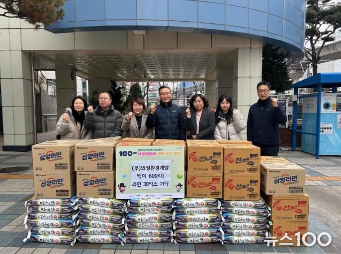 뉴스100 김동초 기자 | 의정부시 호원2동주민센터는 2월 10일 관내 기업인 ㈜의정환경개발이 설 명절을 맞아 어려운 이웃들을 위해 백미 600kg과 라면 30상자를 기탁하며 따뜻한 나눔을 실천했다고 전했다.