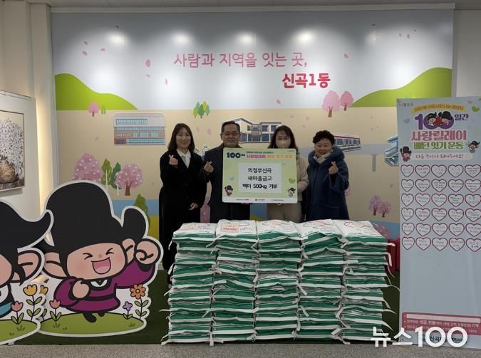 뉴스100 김동초 기자 | 의정부시 신곡1동주민센터는 2월 9일 의정부신곡새마을금고가 어려운 이웃을 위해 백미(10kg 단위) 50포를 기부했다고 밝혔다.