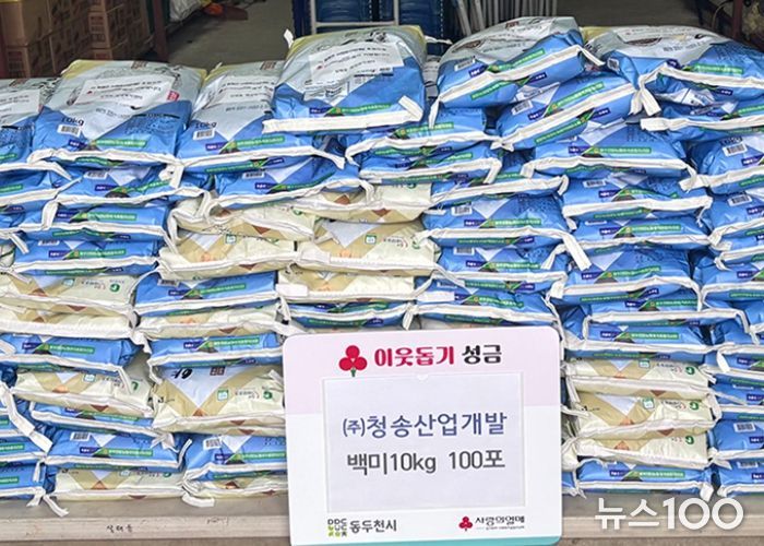 뉴스100 김동초 기자 | 동두천시 상패동 소재 산업폐기물 처리업체 청송산업개발은 지난 11일 설 명절을 맞아 상패동 행정복지센터에 백미 10kg 100포를 기탁했다고 밝혔다.
