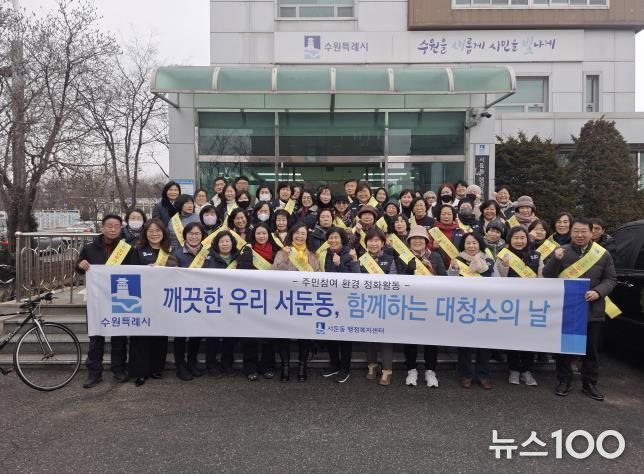 뉴스100 김동초 기자 | 지난 10일, 수원시 권선구 서둔동 통장협의회는 관내 쾌적한 환경 조성을 위한 ‘행복홀씨’입양 구간 정화 활동을 실시했다.