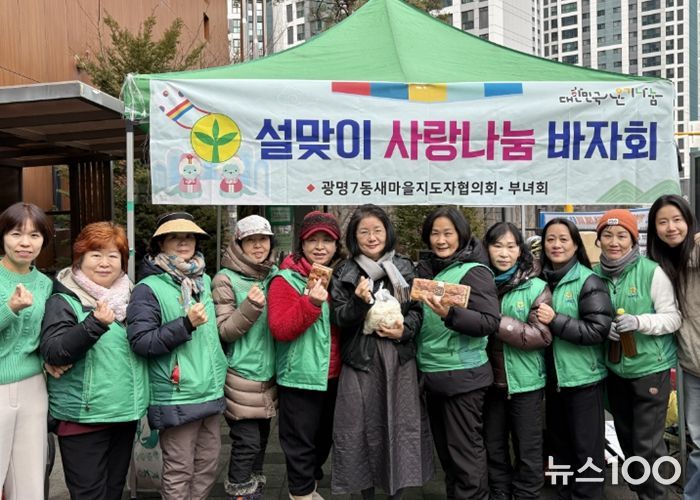 뉴스100 김동초 기자 | 광명시 광명7동 새마을부녀회는 12일 설 명절을 앞두고 소외된 이웃들에게 따뜻한 마음을 전하기 위한 ‘설맞이 사랑 나눔 바자회’를 마쳤다.