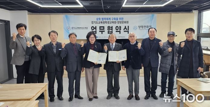 뉴스100 김동초 기자 | 경기도교육청학생교육원이 양평문화원과 지역 기반 상호 협력체계 구축을 위한 업무협약을 체결했다.