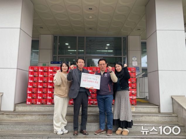 뉴스100 김동초 기자 | 시흥시 군자동에 있는 그린마트가 지난 2월 13일 지역 내 어려운 이웃들을 위해 라면 100상자를 군자동 행정복지센터에 전달하며 따뜻한 나눔을 실천했다.