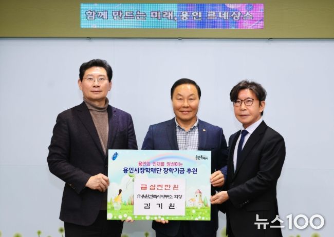 뉴스100 김동초 기자 | 용인특례시는 23일 유원건축사사무소 김기원 회장이 지역 인재 육성을 위해 용인시장학재단에 장학기금 3000만 원을 기탁했다고 밝혔다.