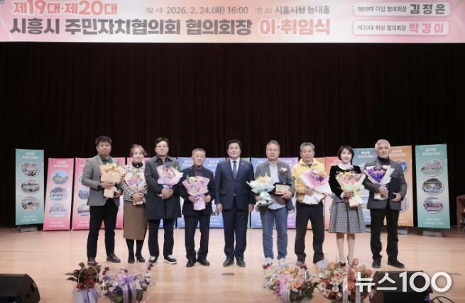 뉴스100 김동초 기자 | 시흥시 주민자치협의회는 지난 2월 24일 시청 늠내홀에서 제20대 시흥시 주민자치회장 이취임식을 열었다.