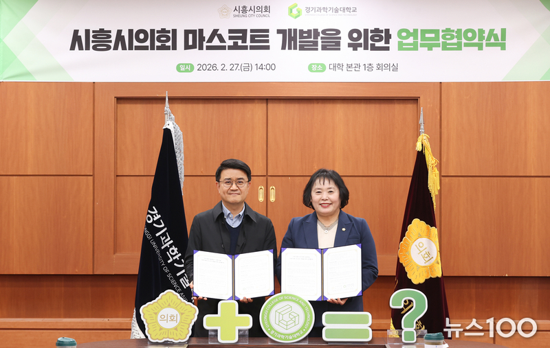 시흥시의회(의장 오인열)가 지역 대학생들의 참신한 아이디어로 의회 상징물(마스코트)을 제작한다. 시흥시의회는 27일 경기과학기술대학교(이하 경기과기대) 본관에서 경기과기대와 '지역사회 상생 및 의회 마스코트 개발을 위한 업무협약(MOU)'을 체결했다.