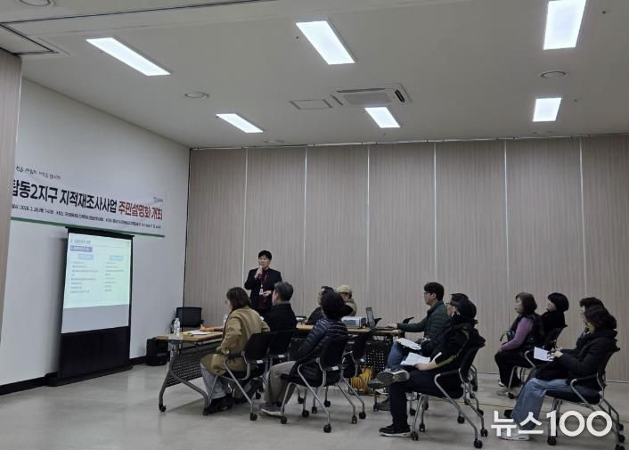 뉴스100 김동초 기자 | 동두천시는 2026년 2월 26일 동두천국민체육센터에서 탑동2지구 토지소유자와 지역주민 등을 대상으로 지적재조사 사업 주민설명회를 개최했다.