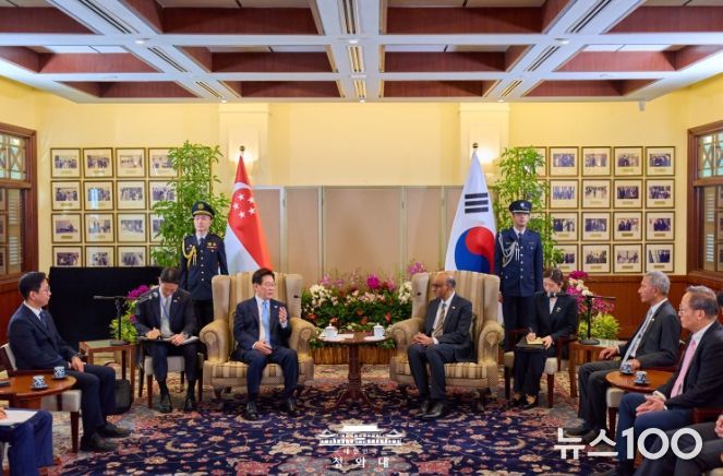 뉴스100 김동초 기자 | 싱가포르를 국빈 방문 중인 이재명 대통령은 3월 2일 오전 한-싱가포르 정상회담에 앞서 '타르만 샨무가라트남(Tharman Shanmugaratnam)' 대통령과 면담을 갖고, 양국 관계 발전 방안에 대해 논의했다.