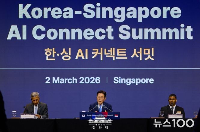 뉴스100 김동초 기자 | 싱가포르를 국빈 방문한 이재명 대통령은 2일(현지시간) 오후 '한·싱 AI 커넥트 서밋'에 참석해 "대한민국과 싱가포르의 동반성장으로 AI 산업의 흐름을 선도하는 'AI 대항해 시대'를 열어갈 것"이라고 밝혔다.
