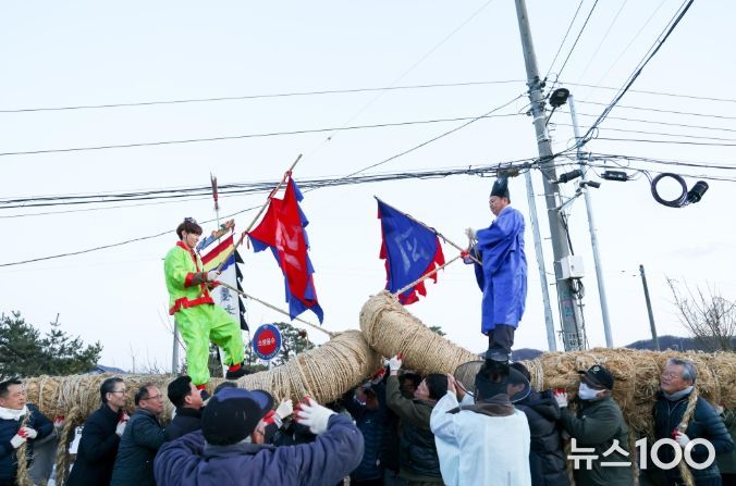 뉴스100 김동초 기자 | 지난 3일 정월대보름에 이천시 신둔면 용면리에서는 한 편의 걸판진 대동놀이가 벌어졌다. 36년 만에 떠오른 붉은 달의 개기월식 아래서 130여 명의 마을주민들과 김경희 이천시장, 박명서 이천시의회 의장을 비롯한 내빈들이 모인 자리에서 용줄다리기가 흥겹게 겨뤄졌다.