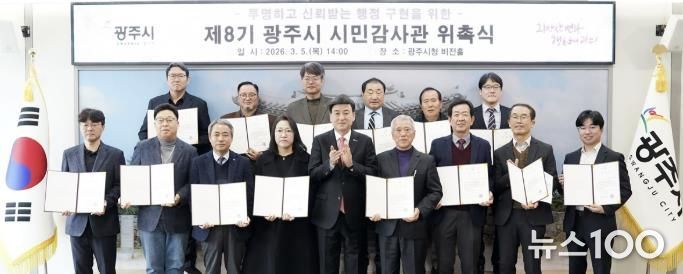 제8기 시민감사관은 총 20명으로, 광주시 거주 시민으로 구성된 명예감사관 5명과 전문 자격 및 실무 경험을 갖춘 전문감사관 15명으로 구성됐다. 임기는 2029년 3월까지 3년이다.