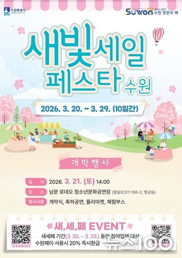 뉴스100 김동초 기자 | 수원특례시는 3월 20일부터 29일까지 ‘제7회 새빛세일페스타 수원’을 개최한다.