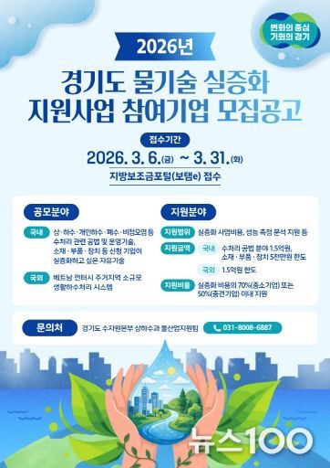 뉴스100 기자 | 경기도가 ‘2026년 경기도 물기술 실증화 지원사업’ 참여 기업을 공개 모집한다.