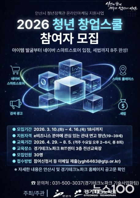 뉴스100 김동초 기자 | 안산시는 e비즈니스 분야 청년 창업자의 안정적인 시장 진입과 사업 운영을 지원하기 위해 ‘청년 창업스쿨’ 참여자를 모집한다고 10일 밝혔다.