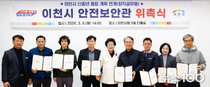뉴스100 김동초 기자 | 이천시는 지난 9일 ‘이천시 안전보안관 위촉식’을 열고 신규 안전보안관 7명에게 위촉장을 수여했다.
