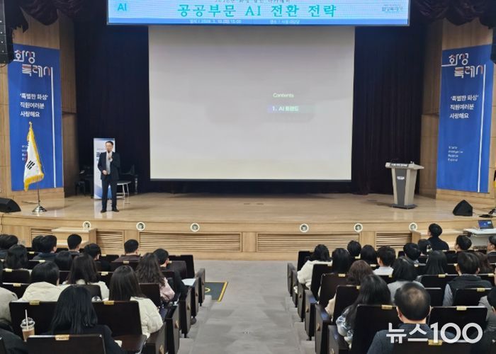 뉴스100 김동초 기자 | 화성특례시는 10일 시청 대강당에서 인공지능(AI) 기술을 행정 전반에 적극 활용하기 위해 전 직원을 대상으로 AI 전환(AX) 교육을 실시했다.