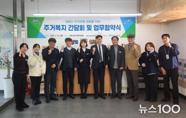 뉴스100 김동초 기자 | 파주시는 지난 10일 파주시주거복지센터에서 파주시노인복지관, 운정다누림노인복지관과 함께 어르신 주거복지 향상을 위한 업무협약을 체결하고, 주거취약 어르신 지원 강화를 위한 간담회를 개최했다.