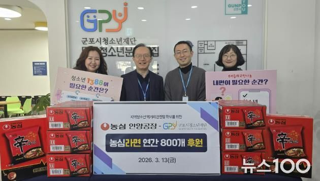 뉴스100 김동초 기자 | 농심 안양공장이 지역 청소년의 생활 기반 지원을 위해 (재)군포시청소년재단에 라면을 정기적으로 기부한다.