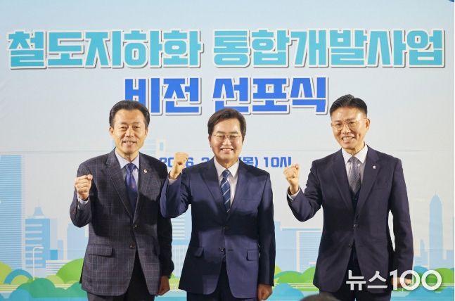 뉴스100 김동초 기자 | 경기도의회 건설교통위원회 김성수 의원(더불어민주당, 안양1)은 12일 안양역에서 열린 ‘철도지하화 통합개발사업 비전선포식’에 참석하여 경부선 안양 구간의 조속한 철도지하화사업 대상지 선정을 촉구하고 강력한 추진 의지를 피력했다.