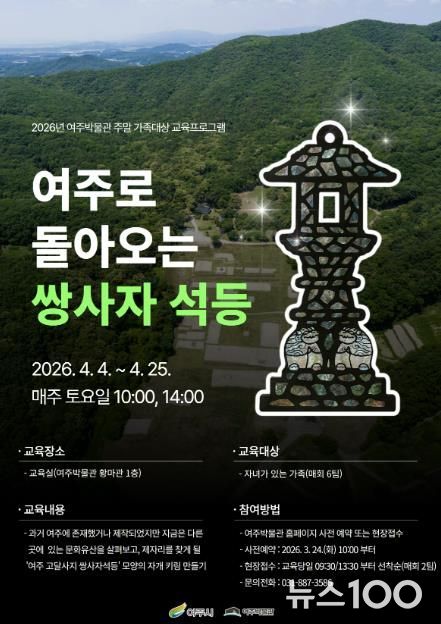 뉴스100 김동초 기자 | 여주시 여주박물관은 오는 4월 주말을 맞아 가족이 함께 지역 문화유산의 가치를 배우고 체험할 수 있는 교육프로그램 '여주로 돌아오는 쌍사자 석등'을 운영한다.