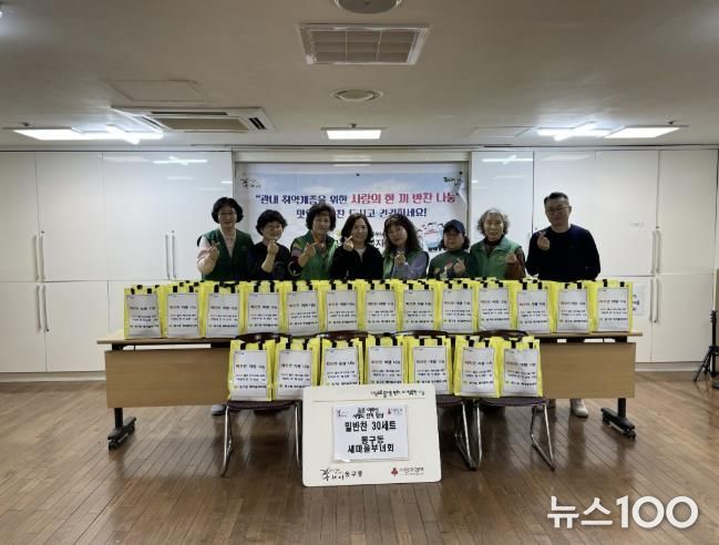 뉴스100 김동초 기자 | 구리시는 동구동 새마을부녀회가 지난 17일 동구동 행정복지센터에서 ‘홀로 어르신 사랑의 한 끼 밥상’ 나눔 봉사를 진행했다고 밝혔다. 이번 활동은 지역 내 홀로 거주하는 어르신들에게 정성껏 준비한 식사와 반찬을 전달하며 따뜻한 이웃의 정을 나누기 위해 마련됐다.
