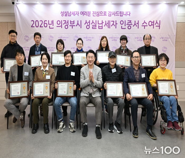 뉴스100 김동초 기자 | 의정부시는 3월 19일 시청 회룡홀에서 ‘2026년 의정부시 성실납세자 인증서 수여식’을 개최했다.