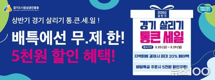 뉴스100 김동초 기자 | 경기도주식회사는 오는 29일까지 ‘2026 상반기 경기살리기 통큰 세일’ 협업을 통한 소비자 할인에 나선다고 22일 밝혔다.