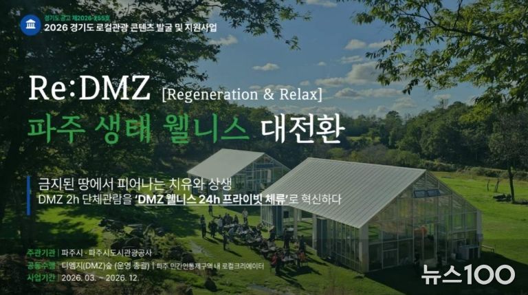 뉴스100 김동초 기자 | 파주시는 경기도와 경기관광공사가 주관한 '2026년 경기도 로컬관광 콘텐츠 발굴 및 지원사업’공모에 최종 선정되어 도비 1억 5,000만 원을 확보했다.