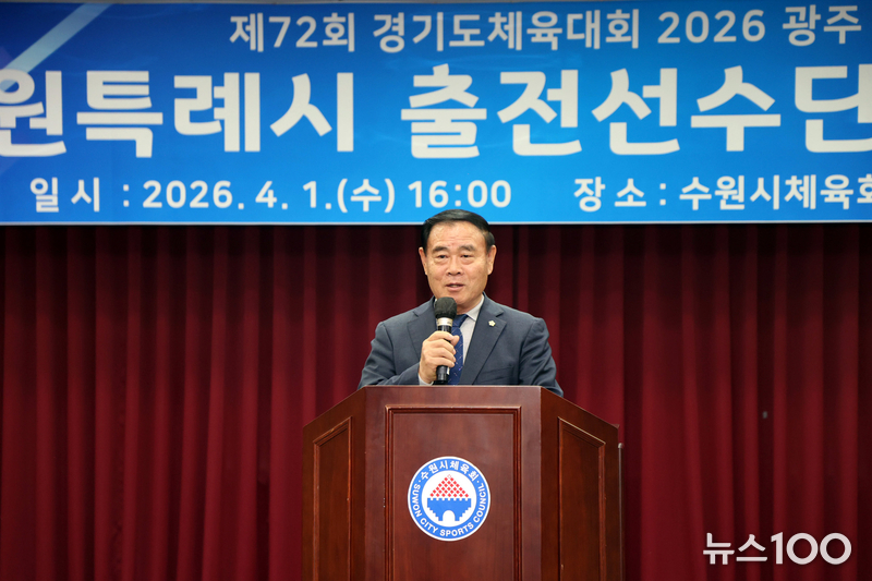 수원특례시의회(의장 이재식)는 1일 수원시체육회관 2층 대회의실에서 열린 「제72회 경기도체육대회 수원시 선수단 결단식」에 참석해 선수단을 격려하고 선전을 기원했다.