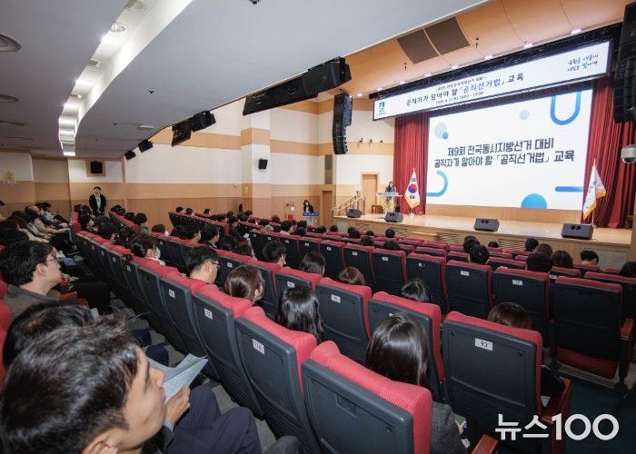 수원시가 2일 시청 대강당에서 ‘제9회 전국동시지방선거 대비 공직자가 알아야 할 공직선거법 교육’을 열었다. 송하경 팔달구 선거관리위원회 지도계장이 공직자들이 자주 묻는 내용을 중심으로 공직선거법을 설명했다.