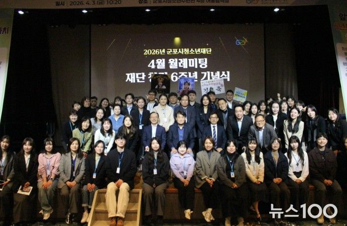 뉴스100 김동초 기자 | 군포시청소년재단은 4월 3일 군포시청소년수련관 청소년어울림극장에서 4월 월례미팅을 열고, 창립 6주년을 맞아 미래도약 의지를 다지는 자리를 마련했다. 이날 행사에는 군포시청소년재단 임직원, 화용선차예문화연구소 등 80여 명이 참석했다.