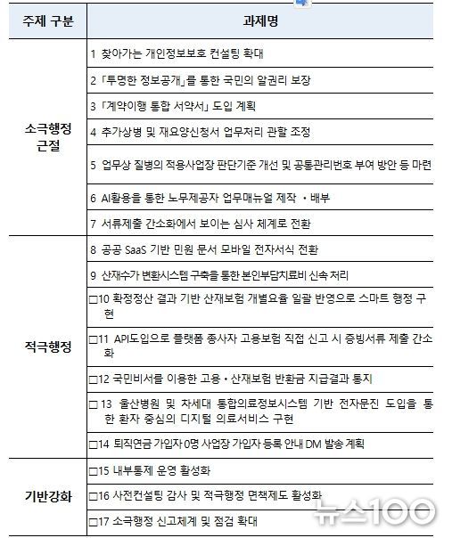 뉴스100 김동초 기자 | 근로복지공단(이사장 박종길)은'2026년 적극행정 실천과제'17건을 선정하고, 국민 불편 해소를 위한 현장 중심의 업무처리 절차 개선을 본격 추진한다고 밝혔다.