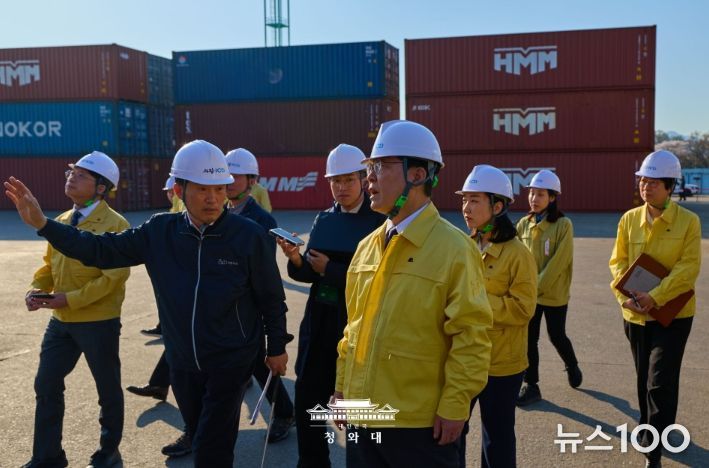뉴스100 김동초 기자 | 이재명 대통령은 8일 오후, 의왕 소재 내륙컨테이너기지(ICD)를 방문하여 고유가 상황으로 어려움을 겪고 있는 화물운송 및 물류업계 종사자들과 간담회를 가졌다.
