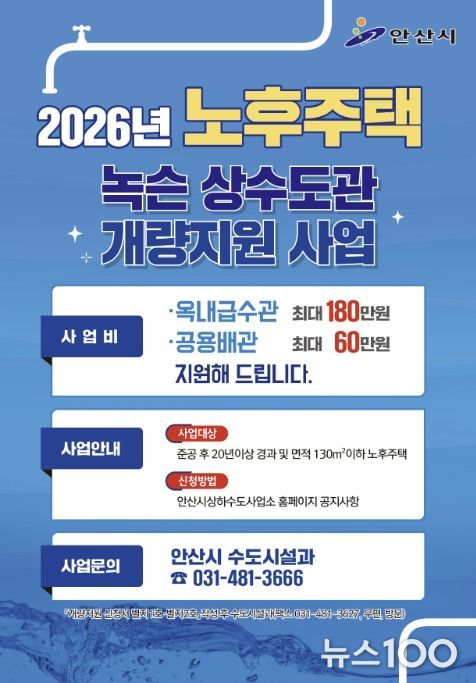 신청 기간은 이달부터 12월까지이며, 예산 소진 시 조기 마감될 수 있다. 신청을 희망하는 시민은 안산시 상하수도사업소 누리집 공지사항을 참고해 신청서를 작성한 뒤 수도시설과에 방문하거나 팩스로 신청하면 된다.