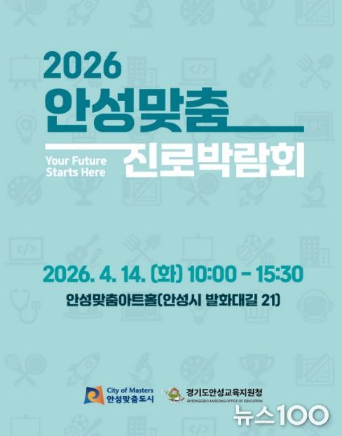 뉴스100 김동초 기자 | 안성시는 오는 4월 14일 안성맞춤아트홀에서 관내 청소년들의 자기주도적 미래 설계를 지원하기 위한 ‘2026 안성맞춤 진로박람회’를 개최한다고 밝혔다.