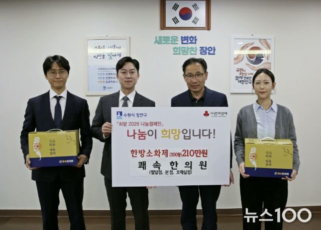 이번 후원은 지역 내 어려운 이웃들의 건강한 일상 지원을 위해 마련됐으며, 기부된 한방소화제는 장안구 내 저소득 취약계층에게 전달될 예정이다.