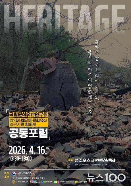 뉴스100 김동초 기자 | 경기문화재단 경기역사문화유산원은 국립문화유산연구원과 전국 7개 광역 문화유산 연구기관(경기, 강원, 충남, 충북, 경남, 경북, 전남)과 함께 오는 4월 16일 청주 오스코(OSCO)에서 ‘국가유산 기후위기 돌파구, 국가와 지역의 협력에서 찾다’를 주제로 공동포럼을 개최한다.