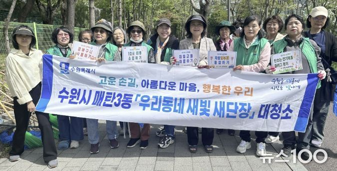 뉴스100 김동초 기자 | 수원시 영통구 매탄3동은 지난 4월 16일 매탄3동 새마을부녀회가 지역사회의 쾌적한 환경 조성과 공동체 의식 함양을 위해 환경정화 활동에 나섰다고 밝혔다.