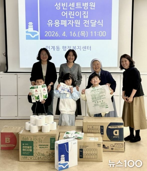 뉴스100 김동초 기자 | 수원시 팔달구 인계동은 지난 16일 오전, 성빈센트병원 어린이집으로부터 아이들이 정성껏 모은 유용 생활 폐자원을 전달받았다고 밝혔다.