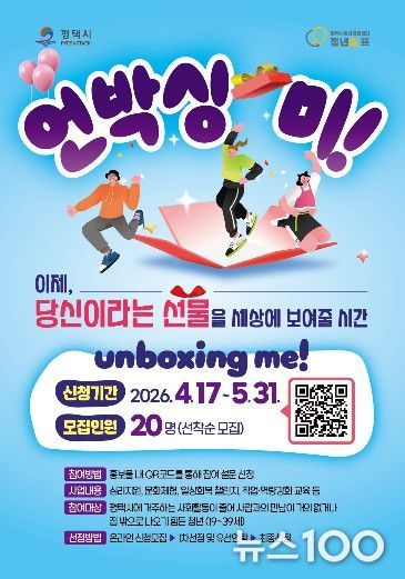 뉴스100 김동초 기자 | 평택시 청년지원센터는 4월 17일부터 5월 31일까지 평택시에 거주하는 사회활동이 줄어 사람과의 만남이 거의 없거나 집 밖으로 나오기 힘든 청년의 일상 회복과 사회 참여 촉진을 위해 실시하는 지원사업 '언박싱 미!' 참여자를 모집한다.