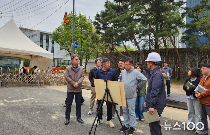 뉴스100 김동초 기자 | 김현수 수원시 제1부시장이 우기에 대비해 17일 관내 주요 사업 현장 안전관리 점검을 했다.